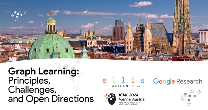 ICML TutorialThis tutorial provides a comprehensive introduction to graph learning and GNNs, covering foundational concepts and recent advancements in the field. We begin with an overview of traditional graph representation and embedding methods, and then focus on modern approaches such as Graph Neural Networks (GNNs), Message Passing Networks (MPNNs), and Graph Transformers (GTs). The second part delves into the expressivity and generalizability of current GNN architectures. We will explore what functions and tasks GNNs can learn, referencing recent research that connects GNN expressivity with the Weisfeiler-Lehman (WL) graph isomorphism test. We will also discuss the generalizability of MPNNs, including their VC dimension and implications for model performance. Next, we address key information-flow challenges in graph learning architectures, such as under-reaching, over-smoothing, and over-squashing. We will highlight recent research aimed at understanding and alleviating these issues, including graph rewiring techniques. The tutorial will conclude with a panel discussion on future directions in graph machine learning. We will explore the limitations of the GNNs, graph foundation models and we will discuss the potential for integrating graph learning with large language models (LLMs) to enhance reasoning and complex data analysis capabilities.